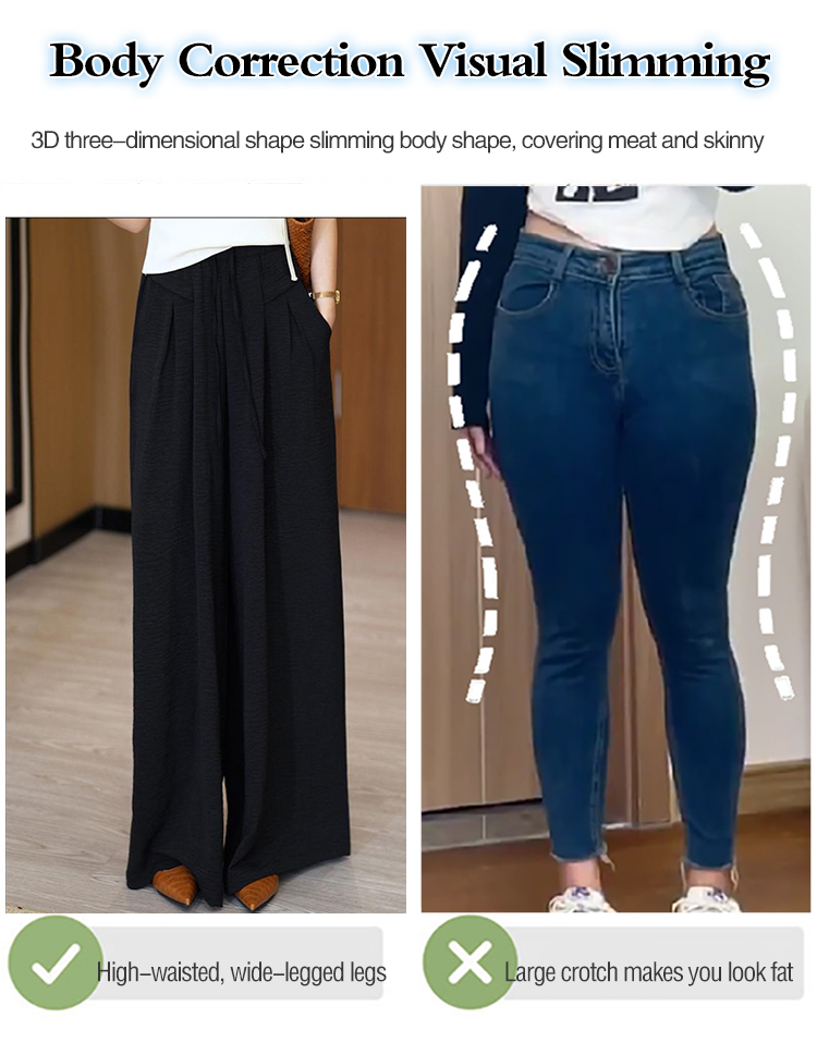 JL Casual Fashion Pleated Wide Leg Pants. Makes You Look Taller, Thinner and Longer Legs