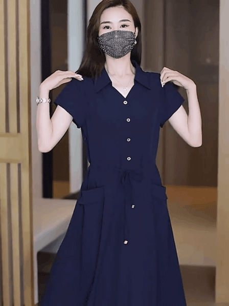 Waist-in and belly covering slimming A-line dress for woman