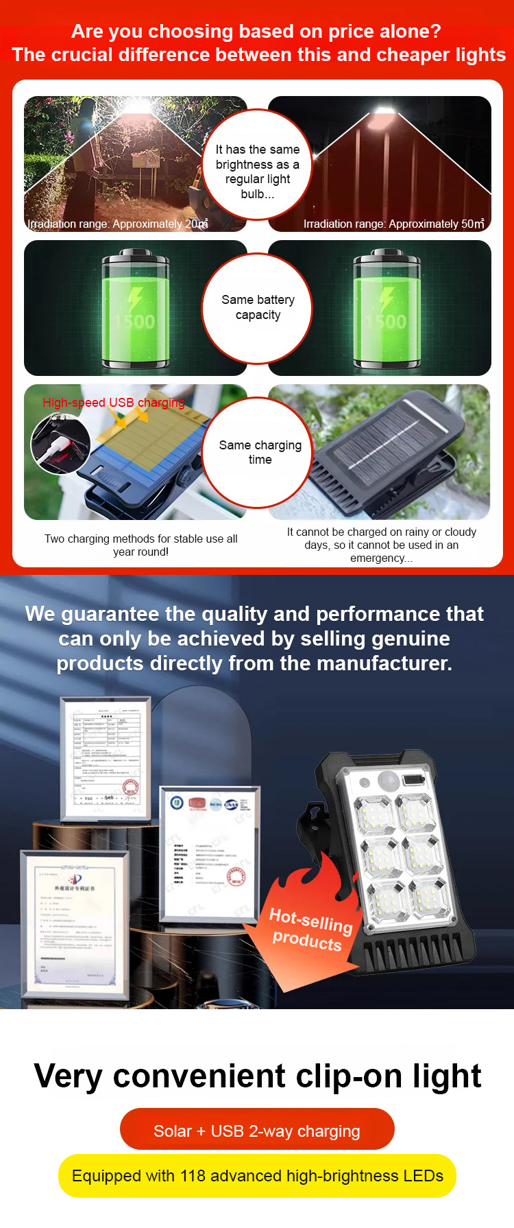 Solar-Powered Clip-On Light: 0 Electricity Cost, No Wiring, No Installation Required